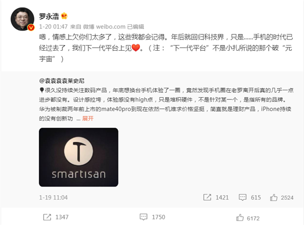 不過,春天即將來臨,“真還傳”將迎來大結(jié)局,期待老羅新的創(chuàng)業(yè)項目。