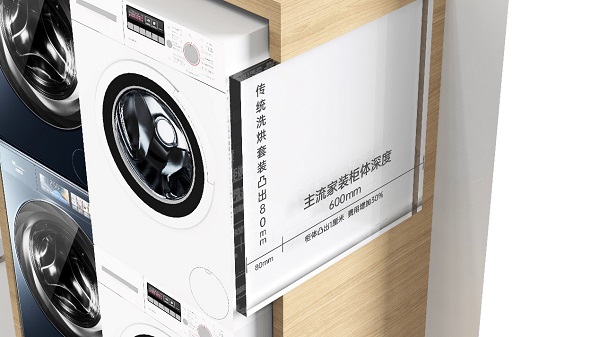 針對(duì)家電和家裝預(yù)留尺寸不匹配這類實(shí)際難題,小天鵝超薄全嵌洗烘套裝在設(shè)計(jì)箱體時(shí)充分考量消費(fèi)者的預(yù)留尺寸,整機(jī)通過(guò)采用超薄全嵌箱體設(shè)計(jì),箱體厚度僅有440mm,可以輕松嵌入目前主流的600mm家裝柜體,可以讓家居空間更加渾然天成,提供更多靈活擺放的選擇。此外為盡可能節(jié)約占地空間,這款產(chǎn)品基于先進(jìn)工裝設(shè)備和產(chǎn)品穩(wěn)靜系統(tǒng)能夠?qū)蓚?cè)間距壓縮至15mm,頂部間距壓縮至20mm,避免縫隙積灰的同時(shí)避免了過(guò)粗縫隙造成的視覺(jué)上割裂感。