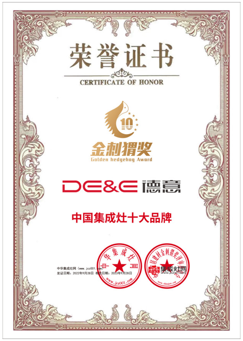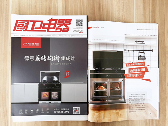 2022年,德意蒸烤均衡集成灶榮登上了行業(yè)權(quán)威媒體《廚衛(wèi)電器》第8期雜志的封面,并成功排進了“集成灶全國品牌占有率TOP10”;9月,獲得了集成灶行業(yè)影響力十大品牌,可謂是名副其實的集成灶十大品牌之一。