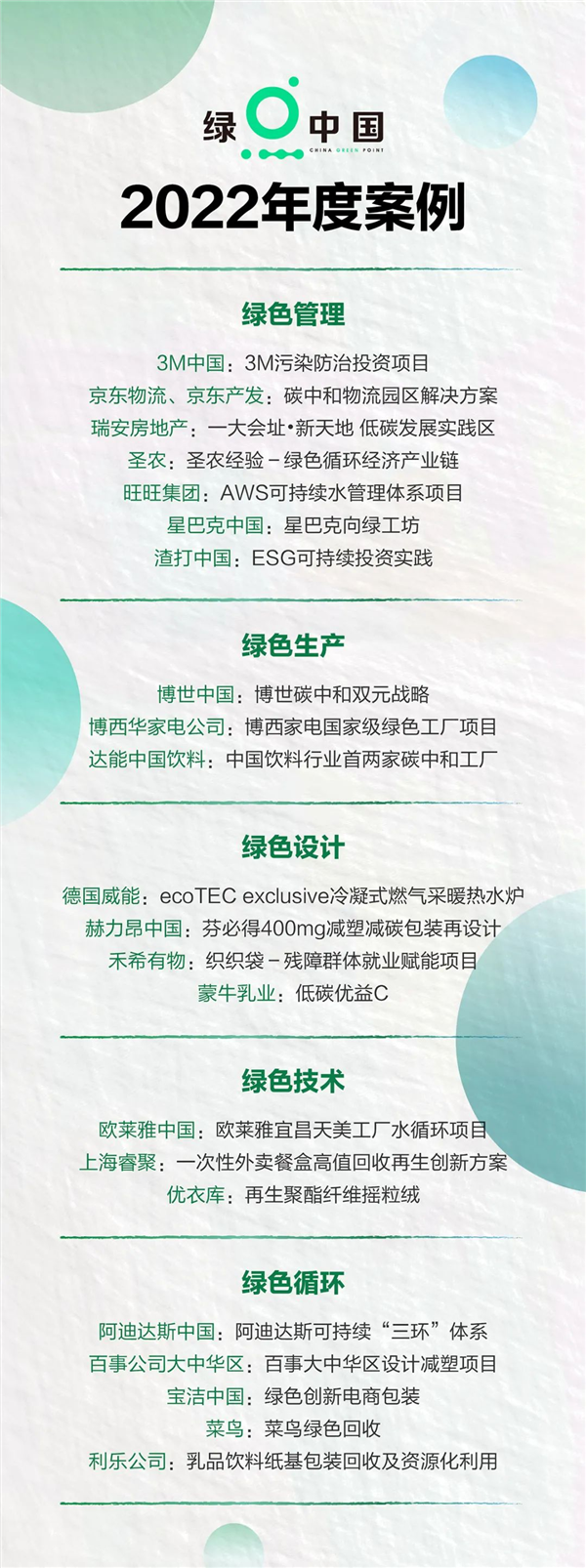 今年站在“雙碳”戰(zhàn)略目標(biāo)的綠色起點(diǎn),第一財(cái)經(jīng)發(fā)起了中國綠點(diǎn)計(jì)劃(China Green Point,CGP),致力于記錄中國凈零排放的開端,并于6月啟動(dòng)了“綠點(diǎn)計(jì)劃·首屆可持續(xù)實(shí)踐案例評(píng)選”項(xiàng)目。首屆評(píng)選吸引了200多個(gè)來自于各行各業(yè)頭部企業(yè)的案例競(jìng)相參選,評(píng)選結(jié)果于近日揭曉,博西家電旗下子公司——博西華家用電器有限公司“博西家電國家級(jí)綠色工廠項(xiàng)目”以優(yōu)異的表現(xiàn)在最終評(píng)審中脫穎而出,榮獲“綠色生產(chǎn)·綠點(diǎn)中國2022年度案例”。這一獎(jiǎng)項(xiàng)的獲得,不僅彰顯了博西家電植根中國市場(chǎng)近三十年來對(duì)可持續(xù)發(fā)展理念的積極踐行,更充分肯定了博西家電在綠色制造領(lǐng)域的亮眼成就。