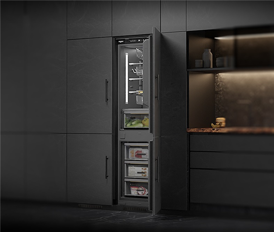 W9系列嵌入式冰箱每一分質(zhì)感的呈現(xiàn),源自每一處細(xì)節(jié)的精雕細(xì)琢,云砂灰深色內(nèi)膽糅合劇院式多維照明與金屬內(nèi)飾(內(nèi)飾設(shè)計(jì)已獲得外觀設(shè)計(jì)專利,專利號(hào):CN307384859S),光澤閃爍其間,隱晦勾勒自然紋理之美;低至39dB(A)的運(yùn)行噪音幾乎“無(wú)知無(wú)覺(jué)”,在喧囂中盡享靜謐,間室抽屜以三段式金屬導(dǎo)軌與鋁合金把手及防凍膠條的柔性設(shè)計(jì),奉上絲滑舒暢的開合體驗(yàn),于細(xì)枝末節(jié)處再顯不凡品質(zhì)。