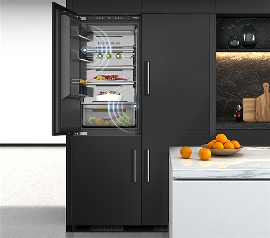 W9系列嵌入式冰箱的愉悅儲(chǔ)鮮體驗(yàn)不僅在于精細(xì)分區(qū),藏于背后的是迭代升級(jí)的保鮮科技為護(hù)航食物品質(zhì)加碼,變頻壓縮機(jī)、變頻風(fēng)扇構(gòu)成的雙變頻系統(tǒng)與智能控溫技術(shù),在變頻設(shè)置與多重傳感器的智能感應(yīng)和調(diào)控下,保持冷量輸出均勻與溫度穩(wěn)定,讓蔬果、鮮蝦等豐潤(rùn)如初,美味與營(yíng)養(yǎng)并存。