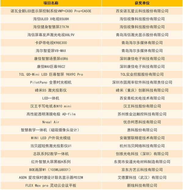 “科技創(chuàng)新獎(jiǎng)”旨在表彰我國(guó)音視頻領(lǐng)域內(nèi)表現(xiàn)突出的企業(yè)創(chuàng)新產(chǎn)品、技術(shù)、應(yīng)用和設(shè)計(jì),從而提升我國(guó)音視頻行業(yè)的自主創(chuàng)新能力和核心競(jìng)爭(zhēng)力。中國(guó)電子視像行業(yè)協(xié)會(huì)副秘書(shū)長(zhǎng)董敏頒布了獲得2022年度“科技創(chuàng)新獎(jiǎng)”的企業(yè)名單: