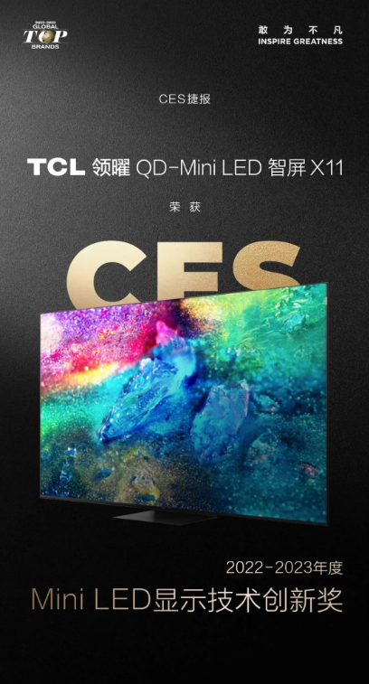TCL領(lǐng)曜QD-Mini LED智屏X11憑借第三代QD-Mini LED技術(shù),榮獲「年度Mini LED顯示創(chuàng)新獎(jiǎng)」。