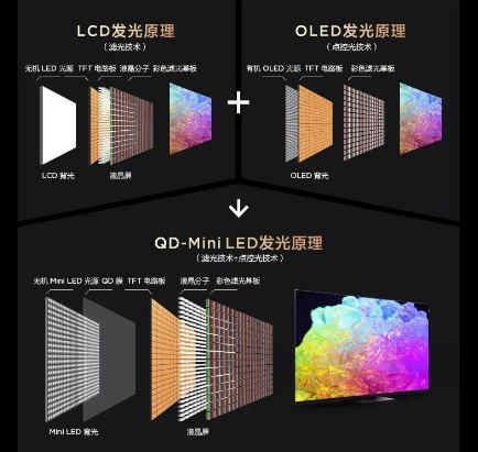 QD-Mini LED技術(shù)作為TCL旗下尖端顯示技術(shù),兼具LCD和OLED的技術(shù)優(yōu)勢(shì),突破性解決了微粒LED芯片巨量轉(zhuǎn)移的行業(yè)技術(shù)難題,將面光源升級(jí)為像素級(jí)點(diǎn)光源;同時(shí)沿用了全球領(lǐng)先的QLED技術(shù),讓產(chǎn)品擁有超高對(duì)比度、超高亮度、超高色域、超長(zhǎng)壽命等優(yōu)勢(shì)。由于其帶來(lái)了近乎極致的體驗(yàn),QD-Mini LED技術(shù)被行業(yè)視為真正的下一代主流大屏顯示技術(shù),目前TCL已經(jīng)占領(lǐng)背光設(shè)計(jì)、背光技術(shù)、整機(jī)模組等12個(gè)領(lǐng)域48項(xiàng)技術(shù)制高點(diǎn),共計(jì)擁有470項(xiàng)專利,在顯示行業(yè)內(nèi)全面領(lǐng)先。