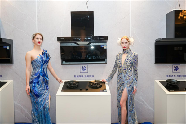 此次展出的產(chǎn)品也是延續(xù)“浙派藍(lán)”的風(fēng)格——兼顧美學(xué)價(jià)值與功能價(jià)值。既有飛翼機(jī)頭、優(yōu)雅鳳凰形態(tài)、6.8°傾角、天幕大燈、Icon氛圍燈等源自自然的美學(xué)設(shè)計(jì),也有無極風(fēng)量旋鈕、云吸凈排和懸浮式勻烤等諸多化繁為簡(jiǎn)的功能。