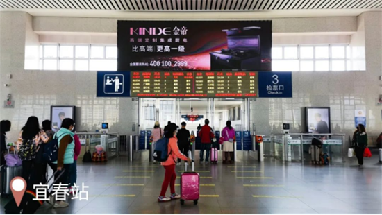 金帝此次在福州站、海口東站、武漢站、杭州東站、長沙南站、安慶站、撫州站、臺州站等國內(nèi)核心高鐵樞紐的廣告投放,以極具視覺沖擊力的高端品牌廣告形象在各個城市站點最顯眼、人流最集中的區(qū)域?qū)崿F(xiàn)了全面覆蓋,包括在進站口、檢票口、候車廳、往來通道等重點位置,以LED超級大屏的形式、聯(lián)合車次信息成為來往旅客繞不開的視覺焦點,深黑配色釋放出獨特品牌魅力,效果吸晴。