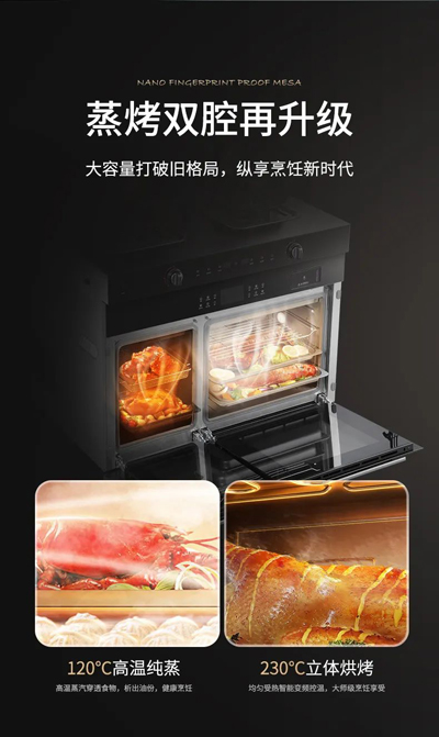 美多深諳當(dāng)下消費主力們對于顏值廚房的追求,深空灰攏煙板的深邃質(zhì)感,搭配亮紫色氛圍燈提升廚房的整體顏值。超薄攏煙采用一體化工藝匠心打造,新升級納米無指紋臺面和煙腔,提升清潔能力的同時更與現(xiàn)代化家居廚房更好地融為一體。