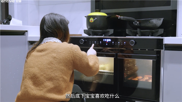“把準(zhǔn)備好食材往集成灶里一放就行,這最簡單的燒菜方法,又好吃又不會翻車,平時炒菜就炒一個菜,寶寶喜歡吃什么,烤一下或者蒸一下,輕輕松松就把我們一家三口的飯菜做好了。也能做很多小孩子喜歡吃的東西!毖ε扛锌骸氨纫郧澳莻灶,真的是好太多了。”