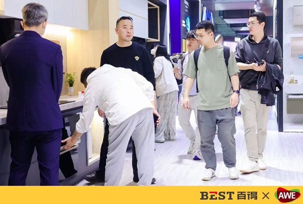 在AWE展會現(xiàn)場,可以看到百得廚衛(wèi)位于展館的主通道,周邊都是一線知名品牌。與其他品牌對比,百得廚衛(wèi)的展位設(shè)計及品牌形象具有較高的辨識度,高級灰和溫暖黃尤為突出,高級灰代表著高端與科技,溫暖黃則象征希望與力量,高級灰與溫暖黃的融合,更象征著百得廚衛(wèi)的不懈努力與品質(zhì)追求。