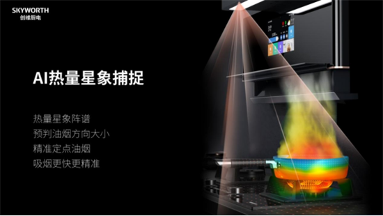 在智能安全方面,薄鏡Max Pro更是做到極致。目前,薄鏡Max Pro擁有AI熱量星象捕捉功能,在煙機(jī)上搭載了紅外攝像頭,像雷達(dá)一樣自動(dòng)實(shí)時(shí)檢測鍋內(nèi)溫度,通過芯片算法,預(yù)判油煙大小方向,自動(dòng)調(diào)整吸力等,實(shí)現(xiàn)煙灶聯(lián)動(dòng);也可以檢測灶具情況,發(fā)現(xiàn)鍋?zhàn)颖蝗∽邉t自動(dòng)轉(zhuǎn)為小火,長時(shí)間不坐鍋則自動(dòng)關(guān)閉,保證廚房和用戶的安全。