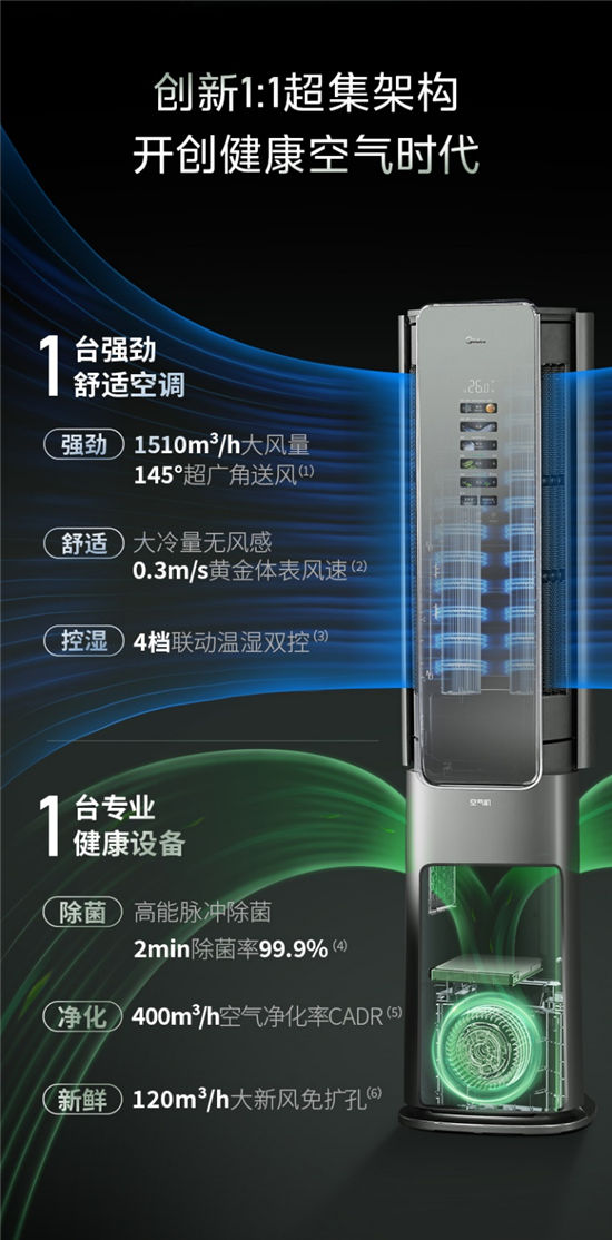 高溫難耐,空調(diào)無疑是夏天人們的“救命神器”,而隨著大眾對空氣健康的高度關(guān)注,人們已不滿足于空調(diào)的簡單制冷制熱功能,美的空調(diào)從大眾亟待解決的痛點立足,推動空調(diào)技術(shù)和產(chǎn)業(yè)的不斷更新迭代,于今年推出新品旗艦美的鮮凈感空氣機,集成空調(diào)、新風機、凈化器、消毒機、除濕機等多種空氣健康設(shè)備的核心功能于一體,從人們備受關(guān)注的空氣“溫濕風凈鮮”維度出發(fā),給消費者帶來清爽健康的夏日體驗!