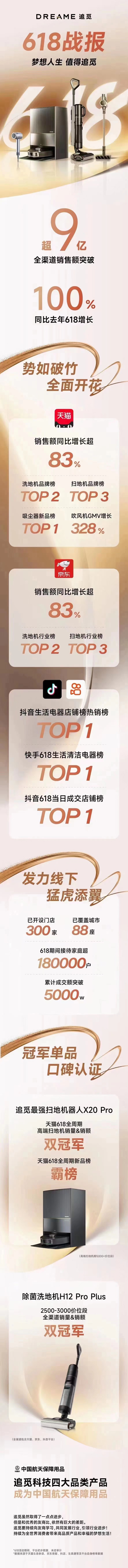 此次618期間,追覓洗地機(jī)全渠道GMV破4億,在京東平臺(tái)銷售額同比增長(zhǎng)超132%,并斬獲抖音生活電器店鋪榜、快手洗地機(jī)品牌榜雙第一。