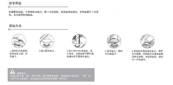 軟水鹽:用來(lái)降低水質(zhì)硬度,可以預(yù)防水垢的產(chǎn)生。
