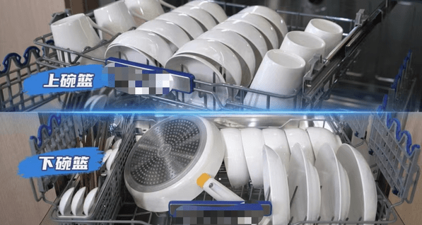 洗碗機(jī)的碗籃一般都分為上下兩層,下籃可以放置一些大湯碗、盤(pán)子、勺子等,甚至可以放個(gè)大炒鍋;上層可以放置飯碗、馬克杯等小體積餐具,放的時(shí)候記得餐具之間留空隙,這樣可以讓水流進(jìn)行充分的沖洗。