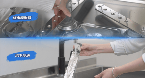 在對(duì)洗碗機(jī)噴淋臂進(jìn)行清洗前,應(yīng)該依次拆下主噴淋臂、高壓噴淋臂和上噴淋臂,將拆下后的噴臂放在水龍頭下,清洗噴臂噴孔,如有堵塞,可以使用牙簽等尖銳物進(jìn)行疏通清洗,沖洗完成后,依次安裝好噴淋臂,整個(gè)清理保養(yǎng)就完成啦!