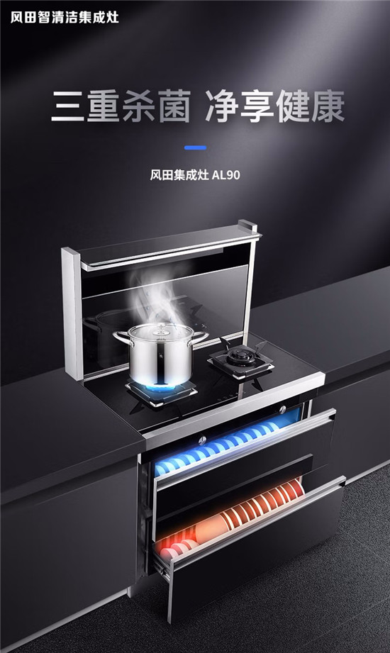 除了消毒柜以外,風田AL90作為集成灶還搭載了強大的煙灶功能。