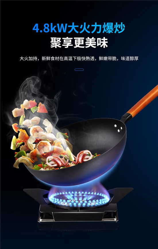 灶具模塊擁有4.8KW大火力,家中也能實現(xiàn)爆炒功能,食物鮮嫩帶脆,味道醇厚。