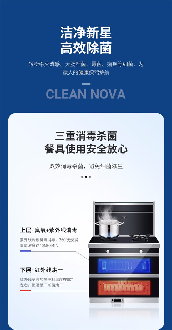 對于特定空間或是指定物品的消毒,我們往往采用噴灑酒精或者是用一些特定消毒液擦拭的措施。但是,餐具與一般的空間和物品完全不同,其使用頻次高且相對固定,因為需要入口,也不能用酒精等消毒劑。因此,我們必須要一臺專業(yè)的消毒設備,比如風田AL90煙灶消集成灶。