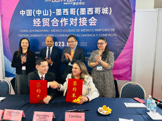 會(huì)上,中山市商務(wù)局聯(lián)合市委統(tǒng)戰(zhàn)部組成的中山經(jīng)貿(mào)僑務(wù)交流團(tuán)向到會(huì)墨西哥嘉賓及客商詳細(xì)推介了中山市產(chǎn)業(yè)營(yíng)商環(huán)境,細(xì)致介紹了中山產(chǎn)業(yè)、優(yōu)勢(shì)商品、品牌企業(yè)的情況。同時(shí),在中國(guó)國(guó)際貿(mào)易促進(jìn)委員會(huì)駐墨西哥首席代表史曉初先生與米奧蘭特國(guó)際會(huì)展首席運(yùn)營(yíng)官Binu Pillai先生的見(jiàn)證下,中山市商務(wù)局與墨西哥中國(guó)商業(yè)科技商會(huì)、墨西哥外貿(mào)、投資技術(shù)企業(yè)理事會(huì)等商協(xié)會(huì)組織簽訂了多份戰(zhàn)略合作協(xié)議,雙方將進(jìn)一步鞏固合作成果,推動(dòng)雙方企業(yè)在貿(mào)易合作關(guān)系向縱深發(fā)展,為中山市企業(yè)搭建直通墨西哥市場(chǎng)的有效渠道。