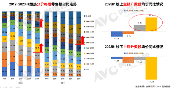價格段方面,線上市場3000元以上價格段呈現(xiàn)增長趨勢;線下市場4000元以上價格增長顯著,其中,4500元以上價格段零售額占比達(dá)到20.7%。