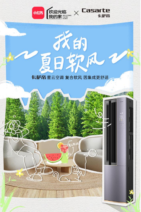 為了搭建品牌與用戶之間真誠(chéng)交流的橋梁,小紅書以獨(dú)具風(fēng)格的家居生活場(chǎng)景IP「歡迎光臨我的家」作為合作陣地,再次合作高端家電代表卡薩帝空調(diào),并聯(lián)合發(fā)起了#我的夏日軟風(fēng)主題活動(dòng)。