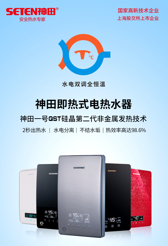 神田集團(tuán)的水電雙調(diào)全恒溫技術(shù),是將調(diào)流閥、水流傳感器、溫度傳感器、可控硅、步進(jìn)電機(jī)等集合在機(jī)器中,針對用電功率與水量進(jìn)行自動雙調(diào)節(jié),無論外界的水溫、水壓、電壓如何變化,都能保證出水溫度達(dá)到設(shè)定的溫度,恒溫效果更好。