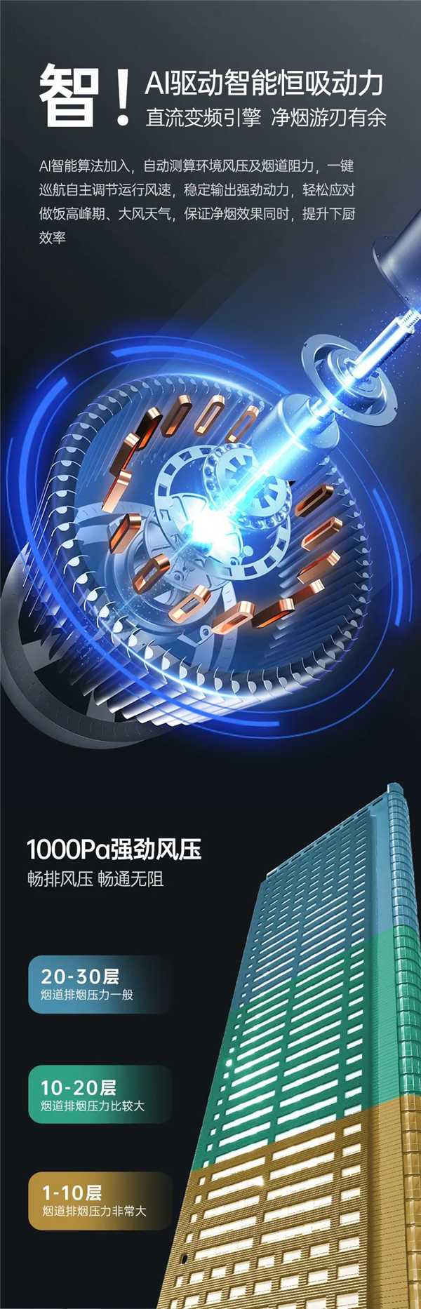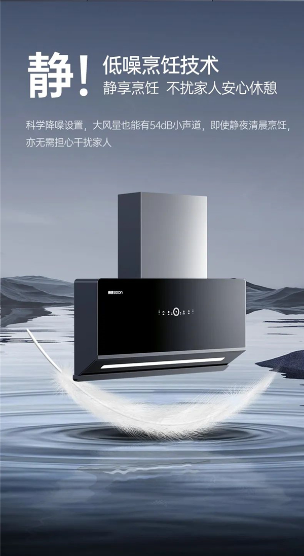 科學(xué)降噪設(shè)置,大風(fēng)量也能有54dB小聲道,即使靜夜清晨烹飪亦無需擔(dān)心干擾家人。