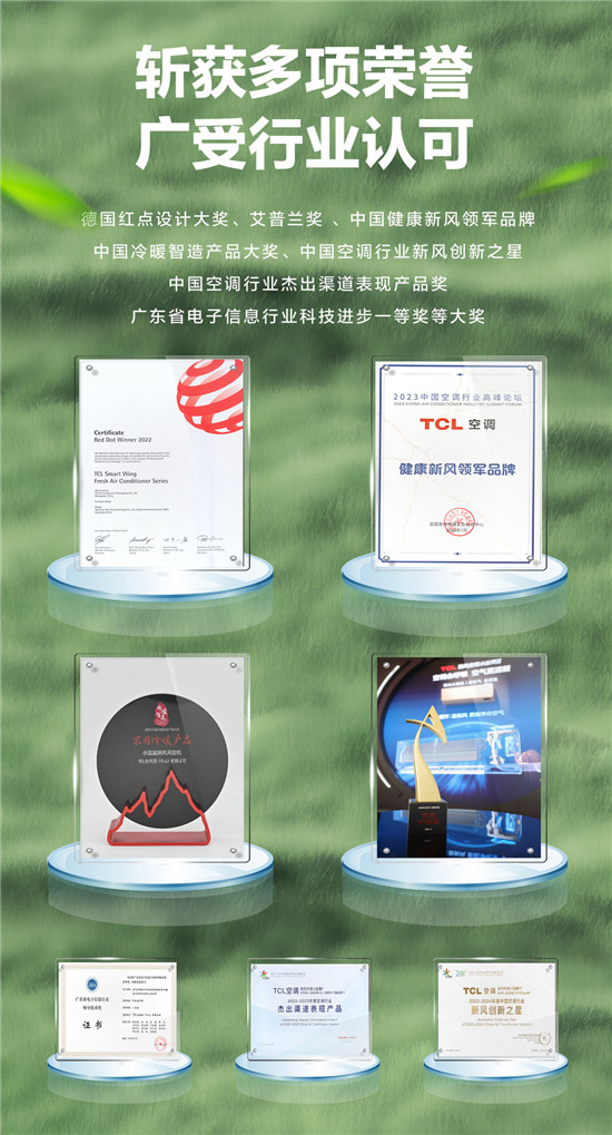 TCL空調(diào)致力于讓更多人輕松享受空氣帶來的健康綠色生活,持續(xù)創(chuàng)新新風(fēng)產(chǎn)品,用新風(fēng)技術(shù)實(shí)力詮釋“新一代空調(diào)”。