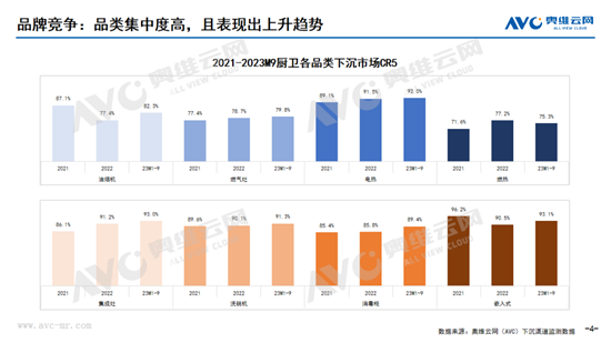 相較于一、二線市場,下沉市場消費者對品類認知偏弱,在選購時也就更信賴和傾向于知名度更高、綜合實力或專業(yè)實力更強、銷售鏈路服務更完善的品牌,因此廚衛(wèi)各品類的集中度處于較高水平,呈上升趨勢。當前對下沉渠道的布局才剛剛開始,企業(yè)想要把握住下沉市場的紅利,首要的就是提高品牌的影響力,加強品牌營銷和銷售鏈路服務,從而提升品牌在下沉市場的競爭力。