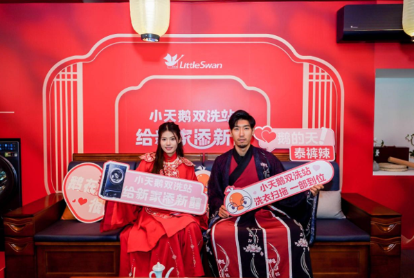 作為專業(yè)的國民家電品牌,小天鵝洞悉現(xiàn)代新婚年輕人,不喜歡做家務、渴望輕松自由的婚后生活,然而經常要面對洗衣、掃地、拖地等繁瑣的家務難題,為了提升新人生活幸福感,給家務減負,小天鵝創(chuàng)新推出雙洗站,主打新婚人群,創(chuàng)造性將洗衣機、掃地機、洗地機相融合,重構產品新形態(tài),實現(xiàn)“一機頂三機”,做到“洗衣掃拖,一部到位”。通過小天鵝雙洗站家電新品與國風古韻驚喜碰撞,不僅為新人帶來一站式家居清潔新體驗,同時為現(xiàn)場新人用戶創(chuàng)造多種“喜事”互動體驗玩法,為追尋國風潮流和品質家居新生活的年輕人營造理享的新家。