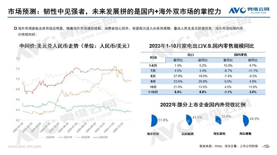 從地域來看,今年下半年海外市場去庫存效應(yīng)明顯,隨著海外市場通貨膨脹趨于緩解,有望再次進入補庫存周期,疊加人民幣兌美元貶值因素,海外市場短期內(nèi)預(yù)計持續(xù)向好。企業(yè)未來發(fā)展最終將走向全球布局及國內(nèi)+海外雙市場的掌控力的比拼。