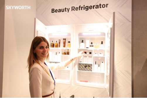 對于愛美的女士來說,把化妝品放進堆滿食物的冰箱里,時間一長容易串味,且冰箱普遍距離化妝區(qū)域較遠,不利于隨手取用和收納。創(chuàng)維洞察到這一消費者痛點,首次在CES上展出了美妝冰箱,其不僅容量充足,可以充分收納,而且通過隱藏門把手等創(chuàng)新設(shè)計,完美嵌入鏡面柜。此外,創(chuàng)維美妝冰箱采用了光域線型柔光,夠清晰不刺眼;還能開機便預設(shè)美妝黃金儲存溫度——12℃,貼心保護珍貴金飾。