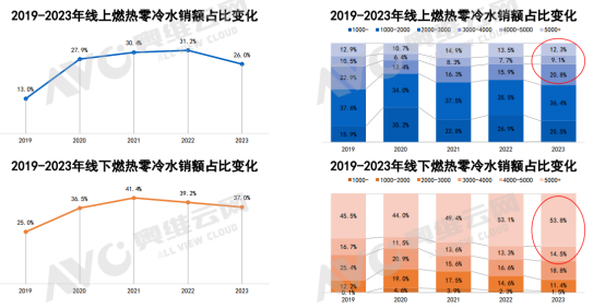 燃?xì)鉄崴魇袌龅男枨蟪尸F(xiàn)出分散化的趨勢,消費(fèi)者對產(chǎn)品的功能和技術(shù)要求也越來越高。從供給端和需求端的趨勢來看,燃熱升數(shù)的變化已經(jīng)逐漸成為市場共識,促進(jìn)了高端產(chǎn)品的穩(wěn)步升級。在線上2000元以上、線下3000元以上的市場中,16L燃?xì)鉄崴鞯姆蓊~逐年增加。