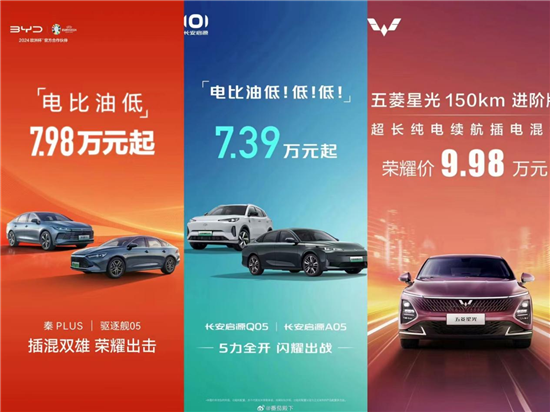 2月19日晚8點(diǎn)25分,長安汽車同樣在微博發(fā)出海報,“電比油低!低!低!”同時宣布長安啟源Q05和長安啟源A05售價7.39萬元起。