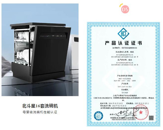 北斗星洗碗機D5通過中家院(北京)檢測認證有限公司(中國家用電器檢測所)健康家電檢測中心的認證,并獲頒“母嬰級洗碗機性能認證”證書,產(chǎn)品品質(zhì)獲得權威肯定。