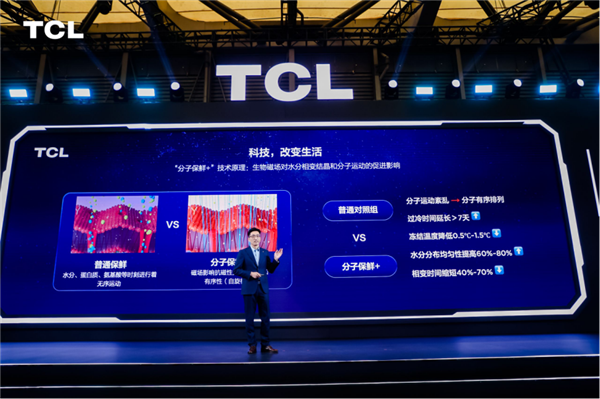 迄今為止,TCL白家電已有27年的深厚積淀,“冰”“洗”科技齊頭并進(jìn),不僅洗衣機(jī)有突破性技術(shù),在嵌入式冰箱領(lǐng)域,TCL同樣展現(xiàn)出了不俗的實(shí)力。技術(shù)發(fā)布會(huì)上TCL冰箱預(yù)研所所長(zhǎng)周思健帶來(lái)了“分子保鮮+”這一創(chuàng)新突破技術(shù)。