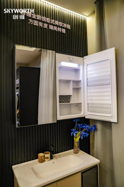 針對廣大愛美人士,創(chuàng)維帶來全嵌鏡柜式美妝冰箱,其不僅容量充足,可以充分收納,同時避免與食物同儲的串味和細(xì)菌,而且通過隱藏門把手等創(chuàng)新設(shè)計,完美嵌入鏡面柜。此外采用了光域線型柔光,夠清晰不刺眼;還能開機(jī)便預(yù)設(shè)美妝黃金儲存溫度——16℃,貼心保護(hù)日常美妝產(chǎn)品。