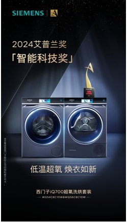 西門(mén)子 iQ700 超氧洗烘套裝WG54C8C10W+WQ56C8C10W榮獲“2024艾普蘭獎(jiǎng)智能科技獎(jiǎng)”