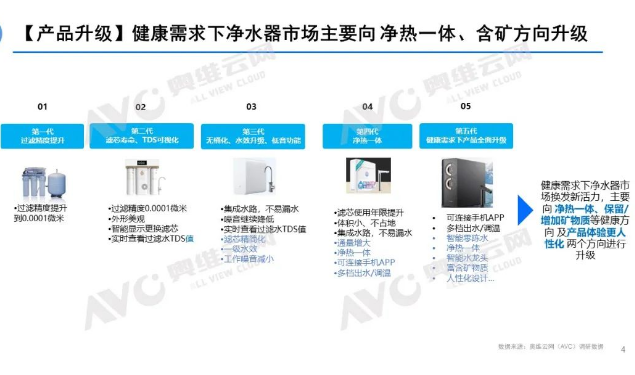 奧維云網(wǎng)(AVC)認(rèn)為,含礦、凈熱一體及全屋凈水等健康凈飲水方案,是凈水市場(chǎng)的新發(fā)展機(jī)會(huì)點(diǎn),預(yù)測(cè)未來(lái)在新方案的影響下,國(guó)內(nèi)凈水行業(yè)將會(huì)迎來(lái)增長(zhǎng)小高峰。