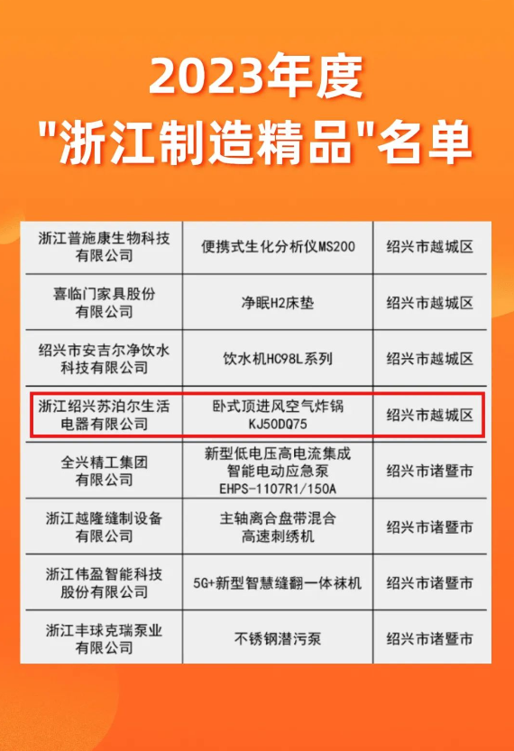 日前,浙江省經(jīng)濟(jì)和信息化廳公布了2023年度“浙江制造精品”名單,確定302項(xiàng)產(chǎn)品為2023年度“浙江制造精品”,其中,蘇泊爾臥式頂進(jìn)風(fēng)空氣炸鍋強(qiáng)勢(shì)上榜。