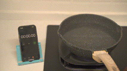 為了詳盡地測試5.2kW的大火力,準(zhǔn)備了燒水測試。僅僅用時(shí)3分40秒,便讓1000mL的自來水沸騰起來,其效率之高令人驚嘆。