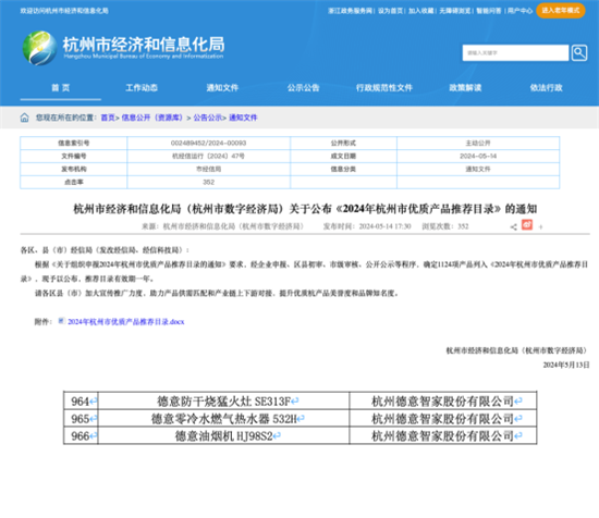 此次德意三款優(yōu)質(zhì)產(chǎn)品入選,充分體現(xiàn)了公司在廚電領(lǐng)域的創(chuàng)新和積累,彰顯了公司強(qiáng)大的品牌實(shí)力和產(chǎn)品力,同時(shí)助力提升杭產(chǎn)產(chǎn)品的品牌形象,推動(dòng)杭州市優(yōu)質(zhì)產(chǎn)品的創(chuàng)新與發(fā)展。