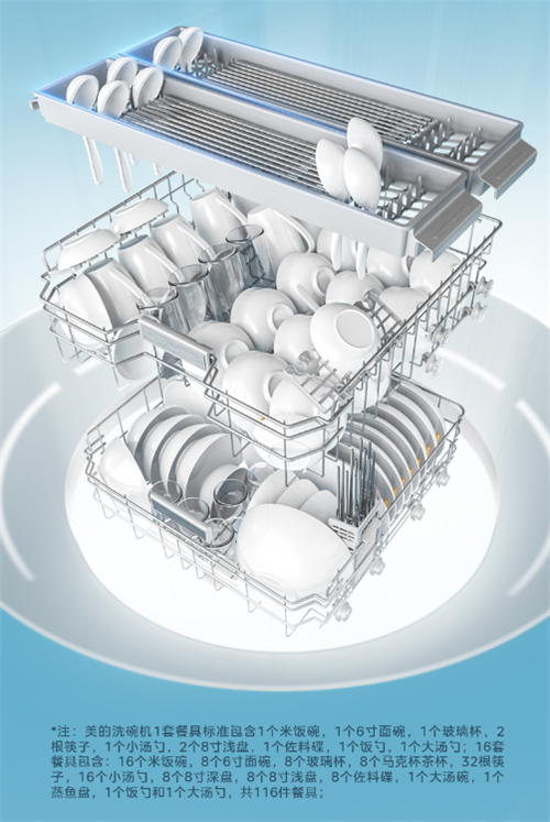 除了標準的16套餐具容量外,它還添加了靈動可調(diào)托盤設(shè)計,以適應(yīng)各類中式廚具的多樣化需求。無論是日常使用的飯碗、碟子,還是更大的炒鍋、湯鍋,甚至是電飯煲內(nèi)膽,都能在這款洗碗機的碗架上找到合適的位置。