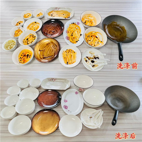 接下來是清洗實驗。將常見的形態(tài)不一等等,并且按照實際的生活場景,進行人工“加污”處理,開啟洗滌按鍵。