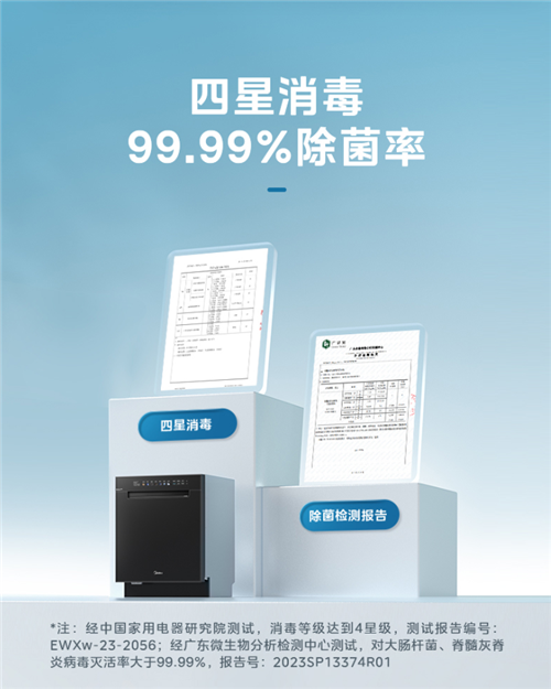 有些家庭在利用洗碗機后,將其作為長期的碗柜使用。長此以往,未被完全烘干的水汽在洗碗機內(nèi)部滯留,逐漸醞釀出難聞的氣味并滋生有害病菌。這些病菌與異味對原本已洗凈的碗碟構(gòu)成了二次“污染”,引發(fā)了消費者對洗碗機發(fā)霉、發(fā)臭等問題的投訴和負面評價。為了打破這一尷尬局面,美的晶焰洗碗機S65Pro不僅專注于洗滌與烘干,更增加了消毒功能,為用戶提供了真正的一站式洗烘消存體驗。