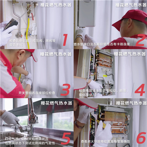 據(jù)悉,SAKURA櫻花安檢服務(wù)設(shè)置有六大項(xiàng)十六小項(xiàng)全方位檢查,包括對(duì)電熱水器自檢系統(tǒng)、漏電保護(hù)系統(tǒng)、電源負(fù)載能力、水路等做檢查;對(duì)燃?xì)鉄崴鳉饴废到y(tǒng)、水路系統(tǒng)、電路系統(tǒng)、點(diǎn)火狀況、燃燒狀況、液化瓦斯壓力等做檢查;對(duì)壁掛爐以及集成灶的燃?xì)夤苈、插頭接觸、通風(fēng)環(huán)境等做檢查。安檢全程免費(fèi),且由專業(yè)安檢人員把關(guān)。除此以外,上門服務(wù)人員還會(huì)就設(shè)備的正確使用方法、保養(yǎng)建議等對(duì)用戶進(jìn)行指導(dǎo)。