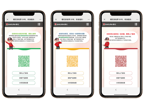 “櫻花安檢季”活動(dòng)中,凡是購買SAKURA櫻花熱水器、集成灶、壁掛爐的用戶,均可通過現(xiàn)場(chǎng)登記,預(yù)約安檢服務(wù);也可通過撥打SAKURA櫻花全國(guó)服務(wù)熱線400-166-6668、登錄SAKURA櫻花官網(wǎng)服務(wù)頁面或進(jìn)入微信公眾號(hào)預(yù)約安檢,在“SAKURA櫻花”微信公眾號(hào)中還專門設(shè)置了“安檢門診部”,用戶通過參與線上“云安檢”可獲取家電體檢報(bào)告,若出現(xiàn)紅碼或黃碼,則可及時(shí)預(yù)約櫻花服務(wù)人員上門安檢,進(jìn)一步排查隱患。不僅如此,參與“云安檢”還有機(jī)會(huì)獲得櫻花燃?xì)鉄崴骷案囿@喜好禮!