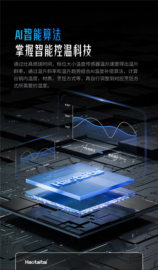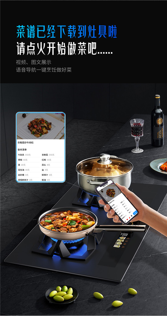 選擇菜譜開始自動烹飪后,Haotaitai味來灶就會依據(jù)菜譜內(nèi)容,開啟語音導航教學,火力配合菜譜自動調(diào)節(jié),專利的AI自主控溫技術(shù)和高精度傳感器共同作用,保證烹飪火候的掌控。用戶只需要跟著的語音提示進行倒油、加菜、翻炒等基礎(chǔ)性的操作,健康和好味道都由Haotaitai味來灶一手包辦。