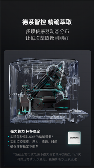對(duì)資深的咖啡愛(ài)好者而言,品味一杯咖啡的時(shí)光是其對(duì)專(zhuān)業(yè)品質(zhì)的體驗(yàn)與鑒賞,感受咖啡文化。西門(mén)子全自動(dòng)咖啡機(jī)內(nèi)置iAroma智萃系統(tǒng),滿(mǎn)足消費(fèi)者對(duì)極致咖啡體驗(yàn)與卓越品質(zhì)的期待。在iAroma智萃系統(tǒng)助力下,咖啡機(jī)通過(guò)每秒50次的溫度和壓力動(dòng)態(tài)校對(duì),精準(zhǔn)監(jiān)測(cè)和調(diào)整水溫、壓力等關(guān)鍵參數(shù),確保每杯咖啡都能達(dá)到黃金萃取比例,充分還原咖啡豆原產(chǎn)地風(fēng)味,出品穩(wěn)定。
